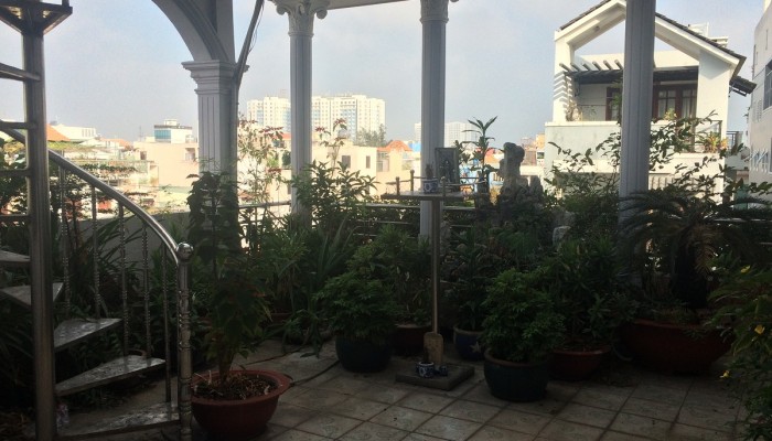 Kết cấu: 6×30.1m, trệt, 3 lầu, sân thượng, 9 phòng ngủ, 9 WC.