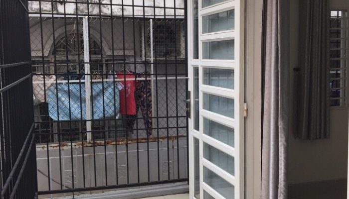 Khu balcony tại phòng ngủ nhỏ đã được làm khung sắt bao quanh, có thể làm nơi uống cafe, thư giãn